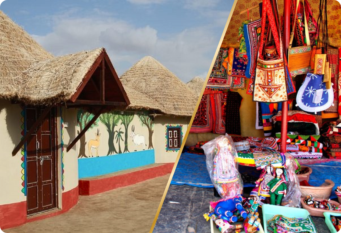 パタン族やミグワール族の伝統を守る村で、刺繍や陶芸、革細工、ラクダ文化など、カッチ文化を肌で感じられる貴重な体験地です。